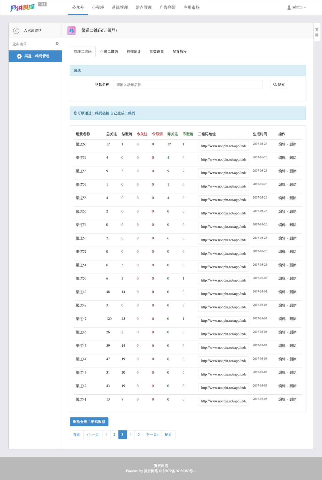 渠道二维码v2.9公众号完整安装包 源码说明 因订阅号没有生成带参数的二维码权限,本模块可以帮助订阅号实现渠道二维码的关注与统计! 渠道二维码扫描后不成功关注不作计算 已经关注过本号,扫描不做计算 取消关注后渠道会统计 取消后重新关注不作计算 源码截图 渠道二维码 本源码来自网络转载或网友提供,仅提供研究学习使用,如有侵权请联系我们删除,本站不承担任何争议和法律责任!易码资源 » 渠道二维码v2.9公众号完整安装包